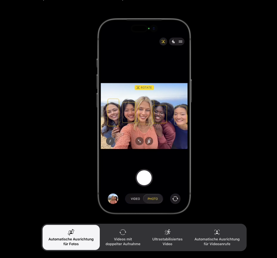 • Hoch- oder Querformat Selfies mit vertikal gehaltenem iPhone