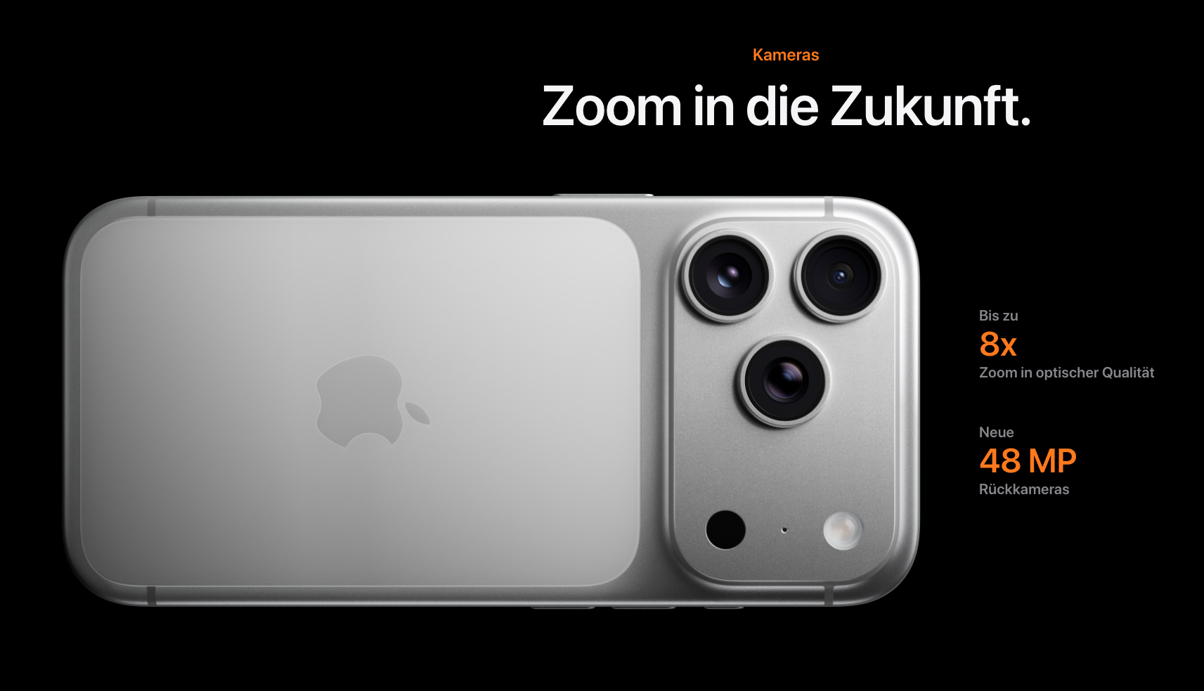 Verarbeitung: Die Rückseite aus Glas mit dem dezenten Apple-Logo und der überarbeiteten Kameraeinheit macht einen hochwertigen Eindruck. Das matte Finish des Titanrahmens fühlt sich premium an.